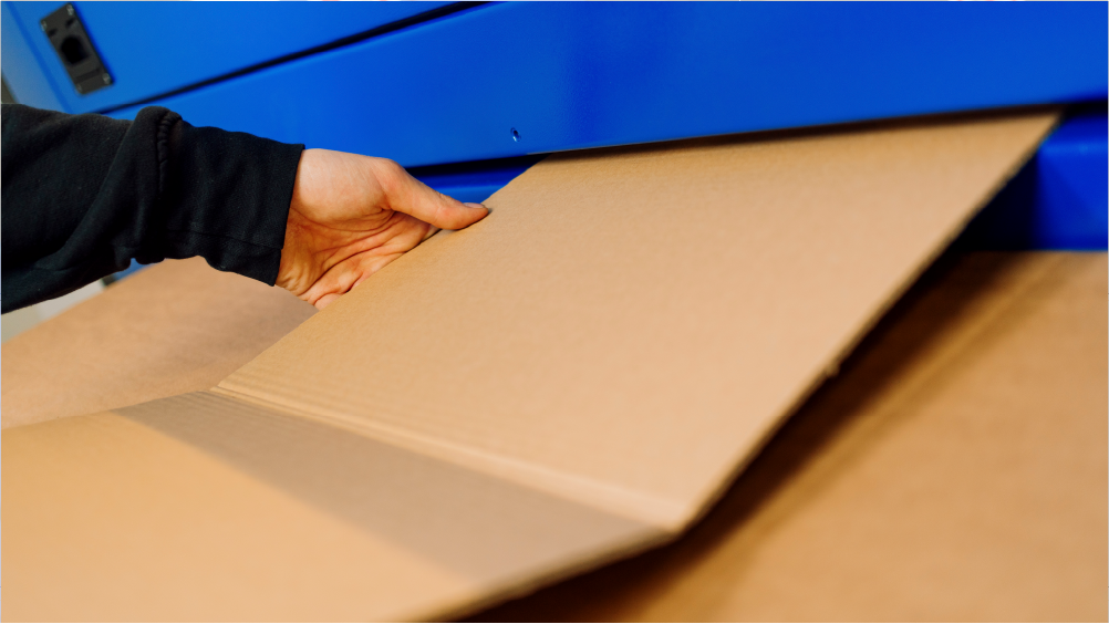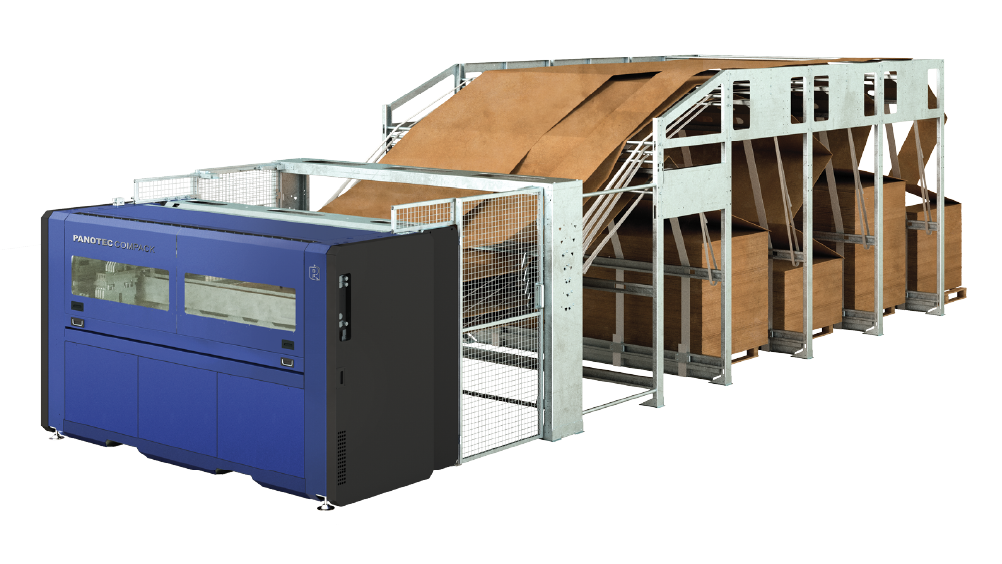 Die Verpackungsmaschinen werden mit einem fortlaufenden Bogen Wellpappe beschickt, der zu einem Leporello gefaltet wird, dem sogenannten Endlospapier. Wenn mehr als ein Endlospapier vorhanden ist, wählt die Maschine automatisch die am besten geeignete Kartonbreite aus, um den Verbrauch zu optimieren.