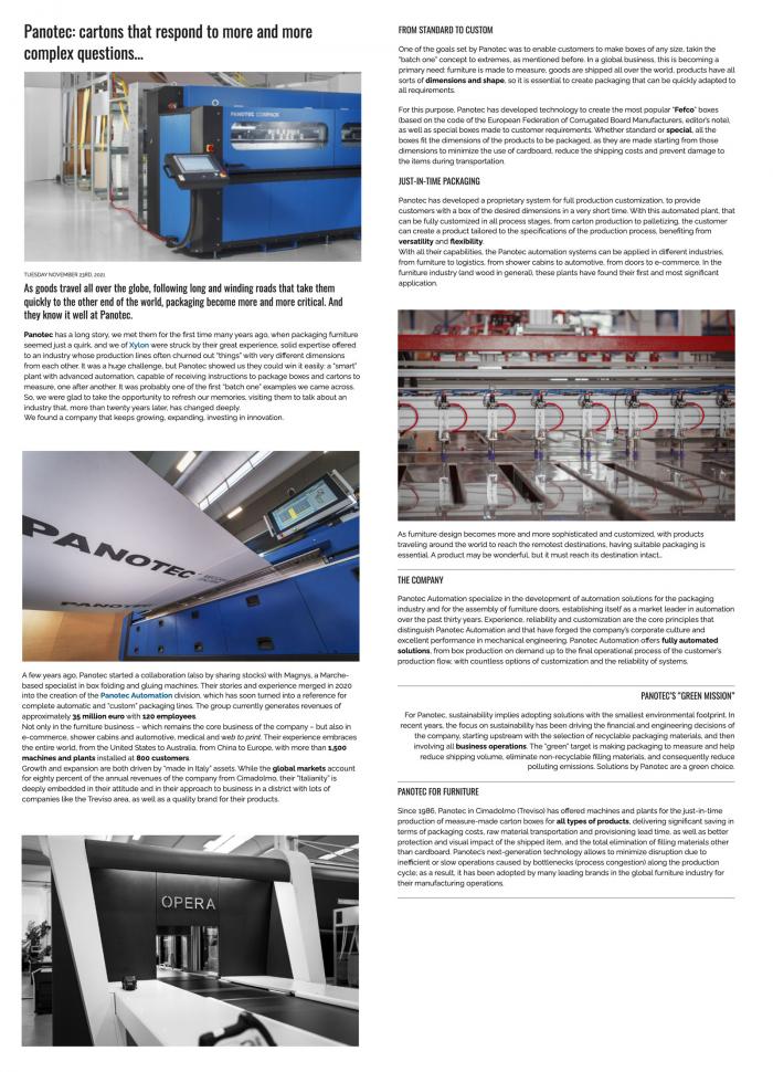 As goods travel all over the globe, packaging become more and more critical. Added to this is the need for companies to match a batch 1 production with flexible packaging. In order to meet this demand Panotec has developed a unique system for the customization of box production, able of supplying the customer with boxes of the desired dimensions just in time. Below you can find the full article of Xylon:
