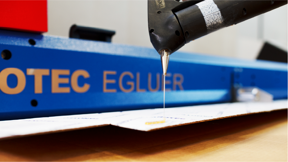 Gracias al uso de cola Hot Melt, este dispositivo permite realizar un encolado eficiente, garantizando una superficie exterior lisa y facilitando la conformación del embalaje.