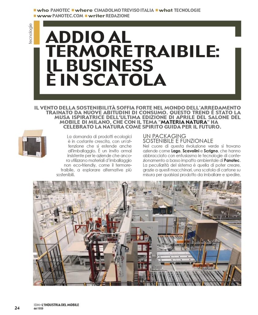 Nel cuore di questa rivoluzione verde si trovano aziende come Lago, Scavolini e Scrigno, che hanno abbracciato con entusiasmo le tecnologie di confezionamento a basso impatto ambientale di Panotec.